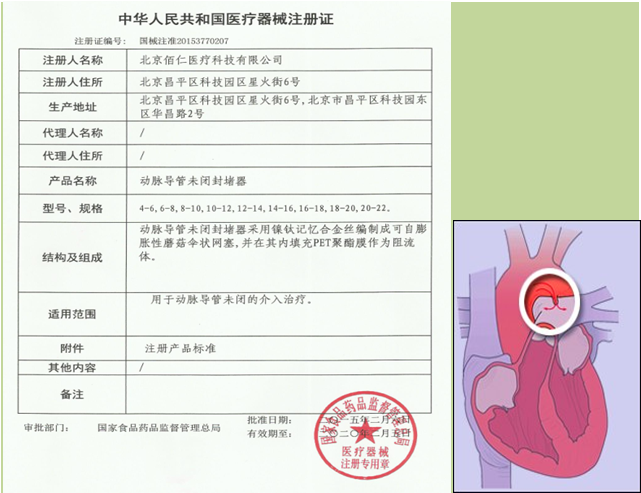6.   北京龙舟飞渡记忆合金应用研究所(北京维心医疗器械有限公司 ASD及PDA 2011-2015年);